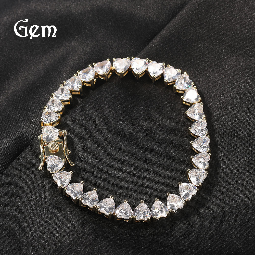European and American Hip-Hop Rap Copper Inlaid with Zircon Love Tennis Chain Fashion Creative Single Row Diamond Bracelet Necklace Wholesale