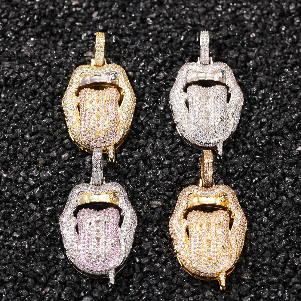 Ancient cute jewelry European and American hip-hop necklace jewelry men's rap rap copper inlaid zircon dollar tongue all-match pendant