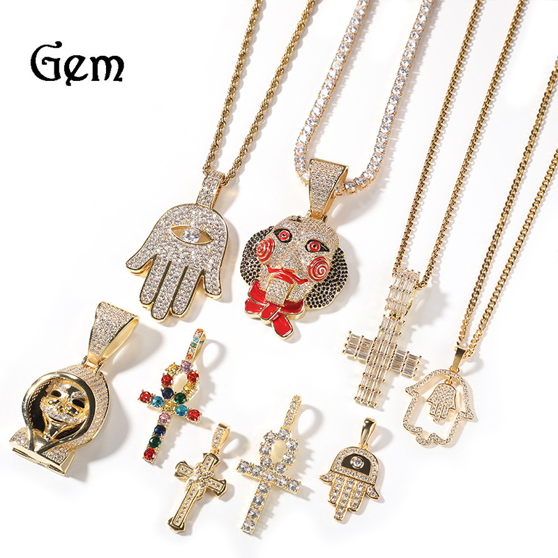 Jinao new hiphop pendant full of drill hands together Cross hip hop Jewelry necklace rap manufacturers wholesale