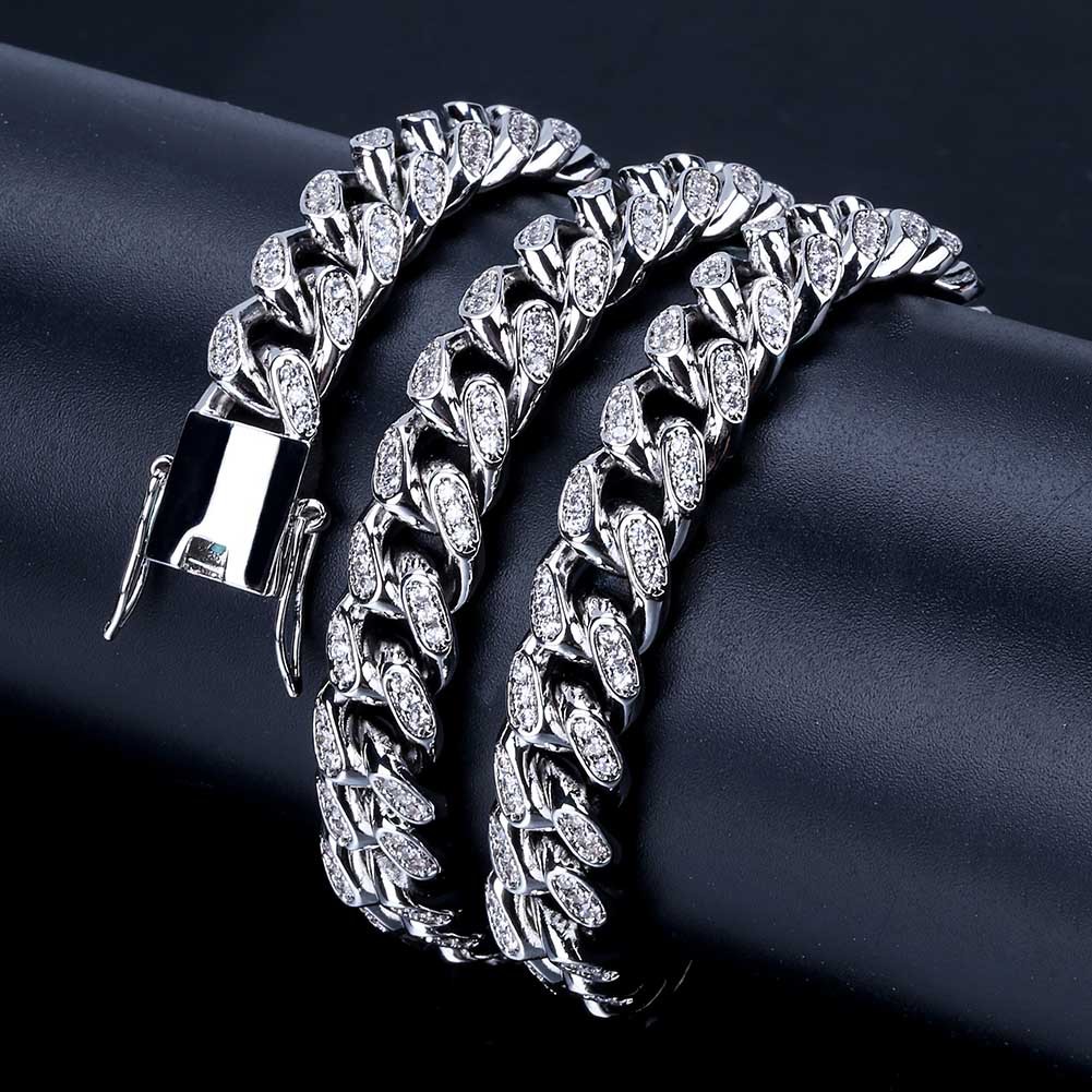 Hip-Hop Rap Hot-Selling Copper Inlaid with Diamond Zircon Bubble Cuban Necklace 16mm Personalized Trendy Brand Jewelry Accessories