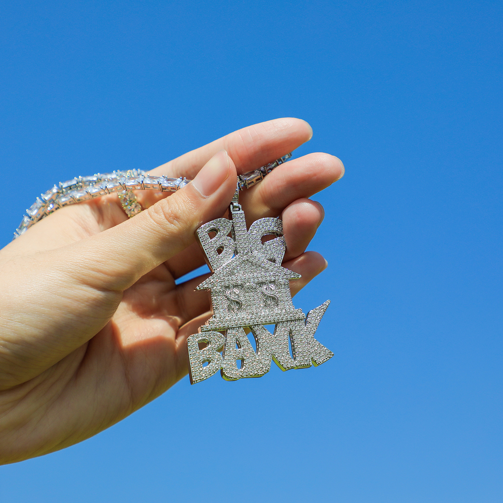 European and American Hip Hop Full Zirconium BIG BANK Pendant Necklace BIG BANK Trendy Rap Accessories Gold Australia Jewelry for Men and Women