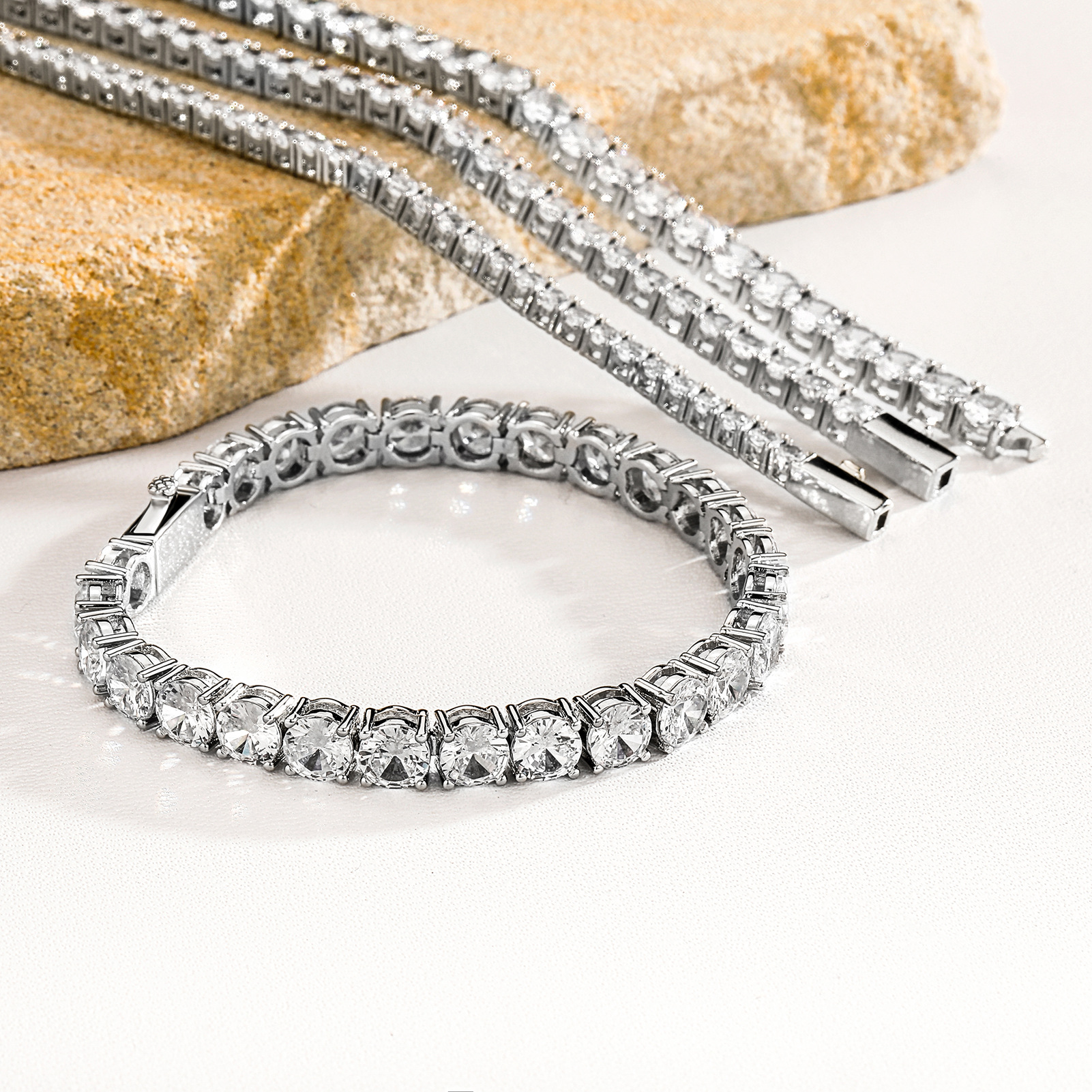 National Tide Jewelry Spring Buckle Color-Retaining Plated Tennis Chain European and American INS Rap Street Auction Tide Zircon Necklace