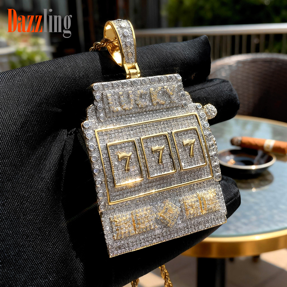 AliExpress foreign trade new 777 letter pendant hip hop rap Diamond-embedded men's necklace factory direct sales