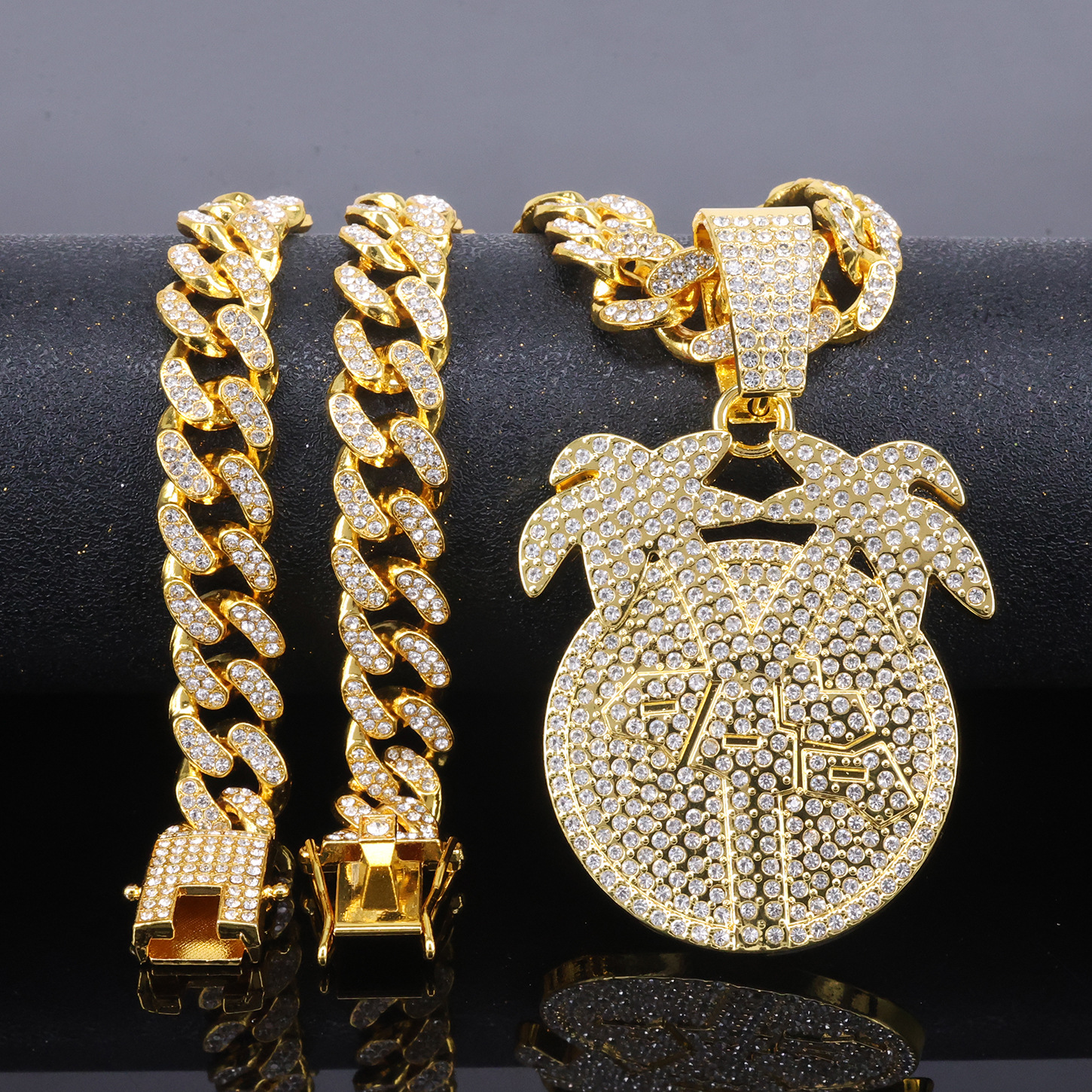 Alloy Necklace European and American Men and Women's Trendy Big Money Pendant Hip-hop Personality Fashion Rap Diamond Pendant