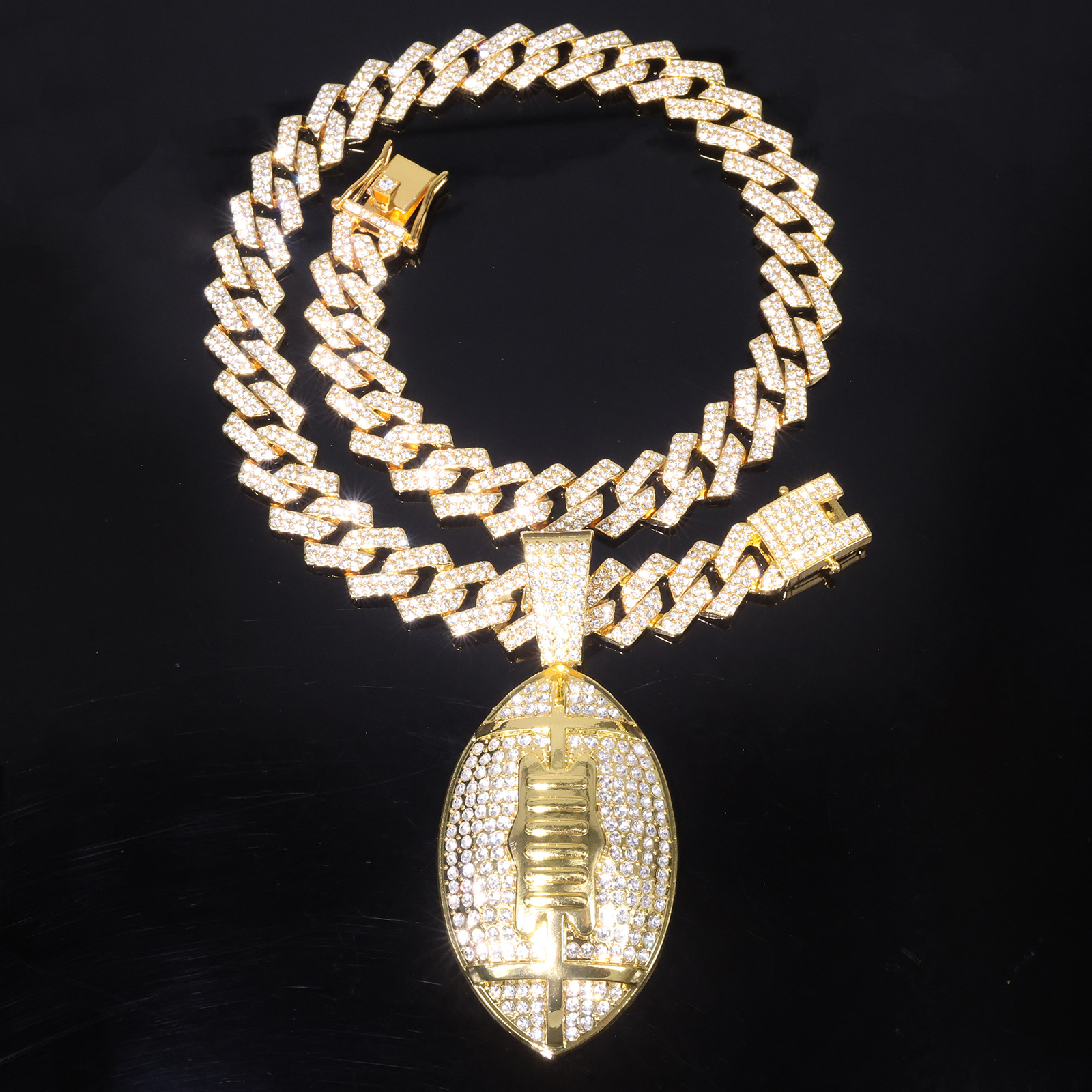Alloy jewelry cross-border hot-selling rugby-shaped metal pendant European and American rap men's hip-hop necklace accessories