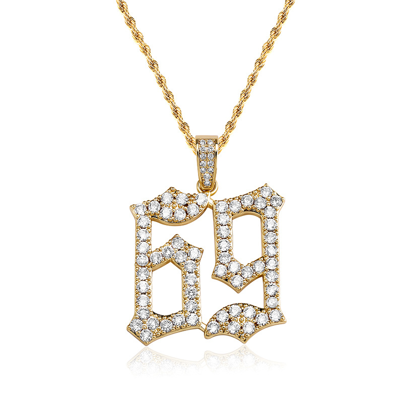 European and American hip-hop personality digital 69 pendant full set zircon European and American rapper with accessories factory direct sales