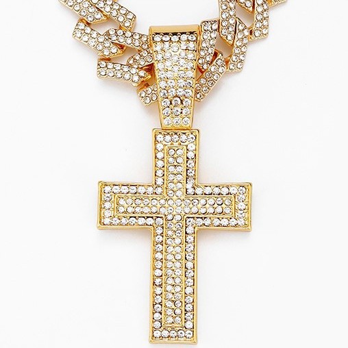 European and American Fashion Hot Selling Alloy Diamond Cross Pendant Fashion Trend Rap Diamond Men's Cuban Chain Necklace