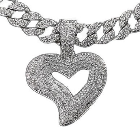 European and American Men and Women New Big Heart Pendant Alloy Necklace Hip-Hop Stylish Fashion Rap Diamond Pendant Customization