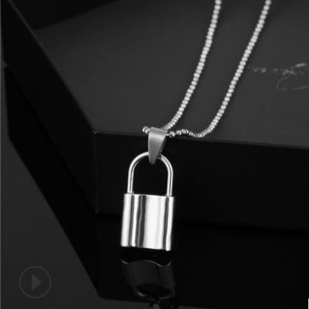 All-match Fashion necklace niche alloy door lock pendant high-grade trendy men's exquisite rap clavicle chain jewelry accessories