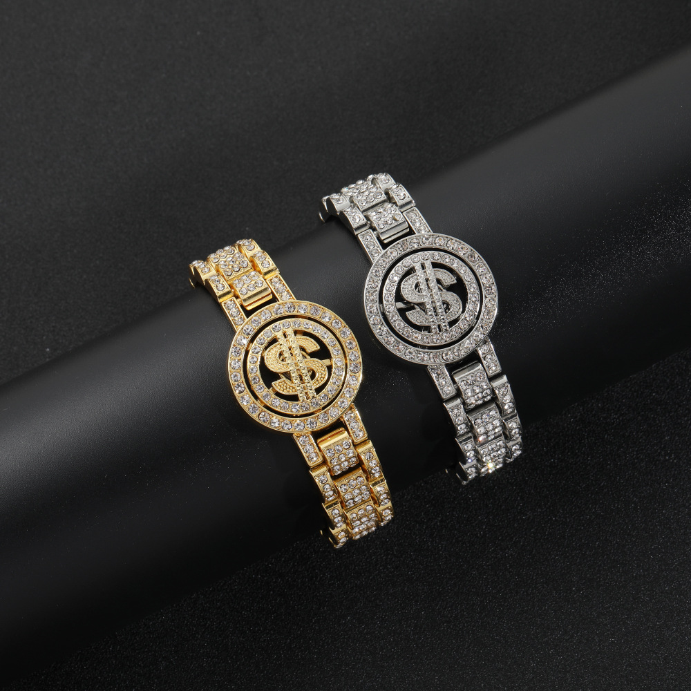 European and American New Dollar Bracelet Hip Hop Dollar Rotatable Bracelet Nightclub Party Symbol Bracelet Rap Accessories