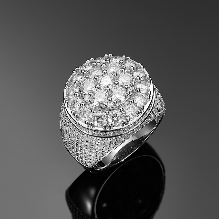 Men's Ring with Micro-Paved Moissanite, 925 Silver Ring, Flower Diamond Ring, European and American Hip-Hop Rap Ring, Geometric Diamond Ring