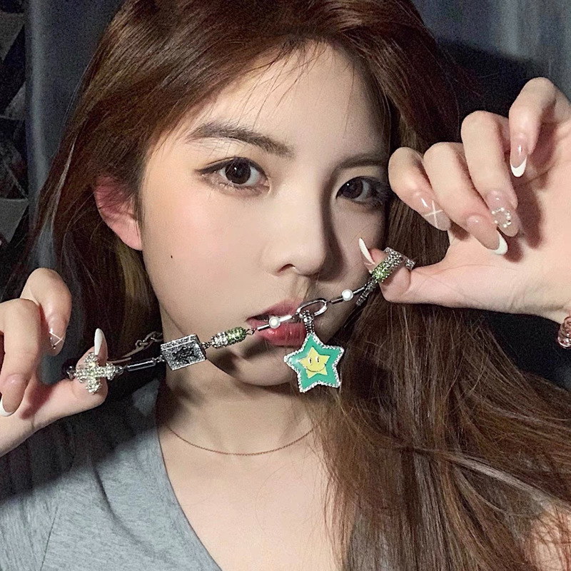 New National Tide Diamond-encrusted Cross Lucky Star Smiley Necklace Hip Hop Street Rap Mahjong Rich Men's and Women's Necklace