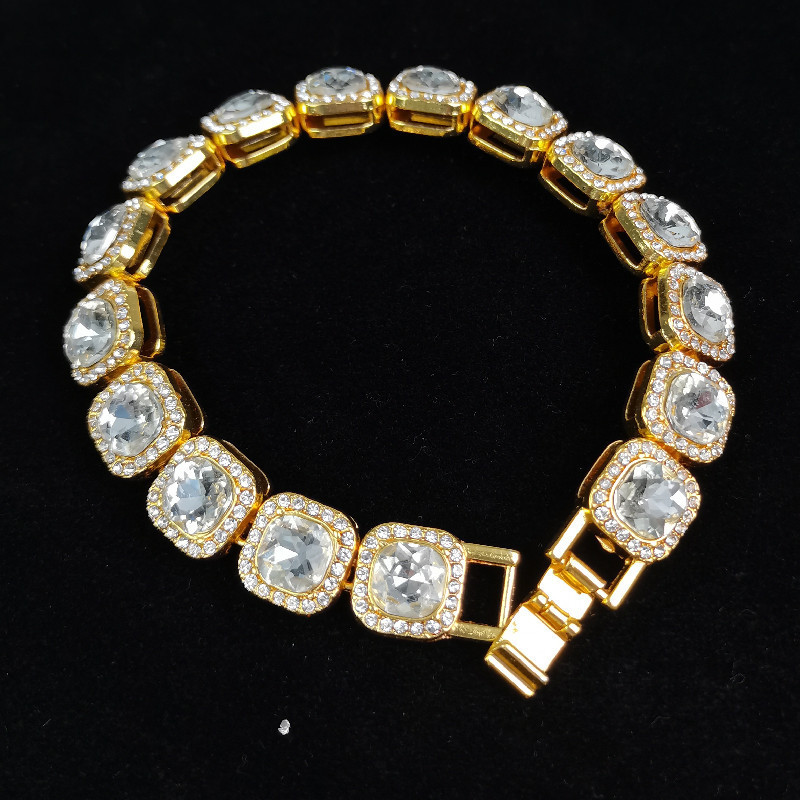 Men's Hip-Hop Rap Accessories HIPHOP Round Square Diamond Candy Full Diamond Full Diamond Gold Necklace