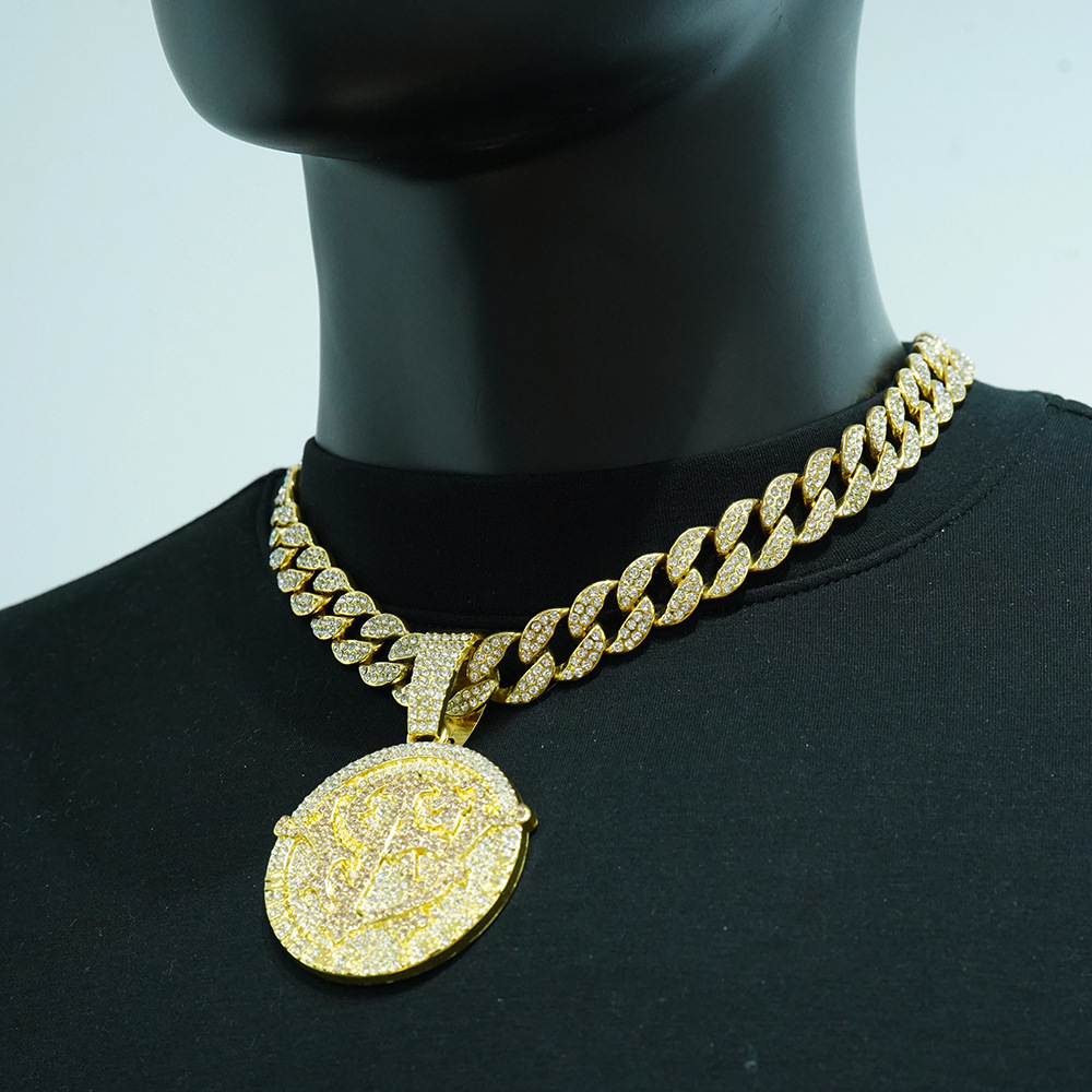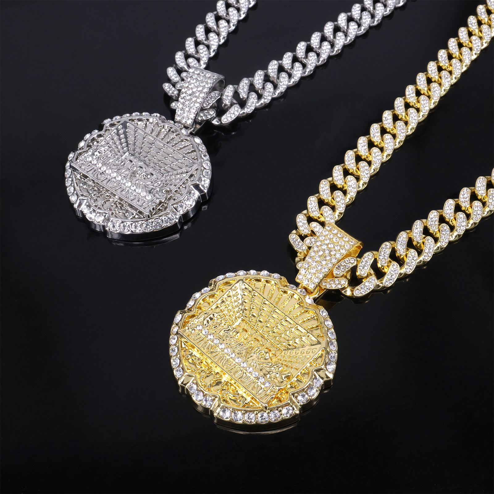 Alloy Necklace European and American Men and Women's Trendy Big Money Pendant Hip-hop Personality Fashion Rap Diamond Pendant
