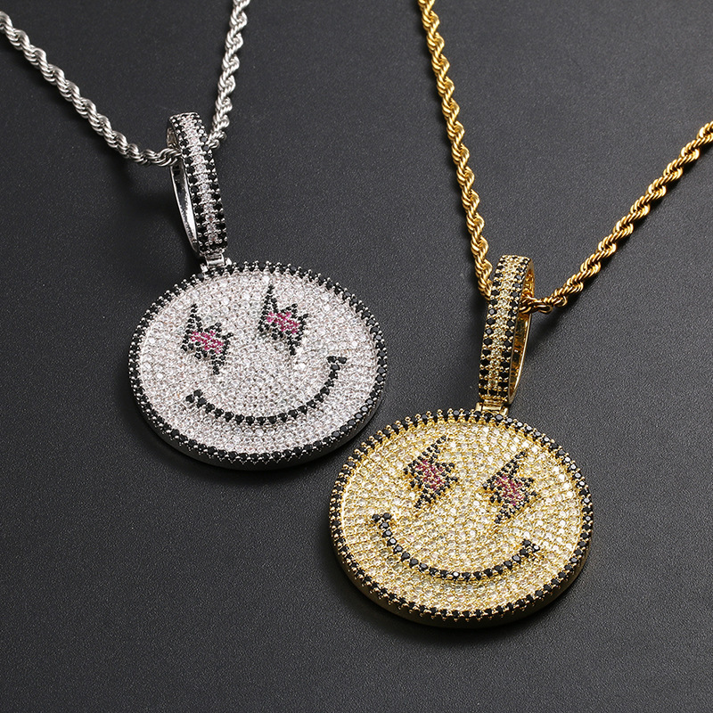 TEMU SHEIN European and American new luxury smiley face lightning pendant hipster rap hip-hop jewelry