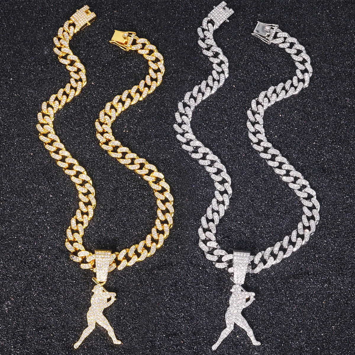 Trendy European and American Men's Cool Baseball Full Diamond Pendant Hip-Hop Street Dance Rap Outfit Cuban Chain Alloy Pendant