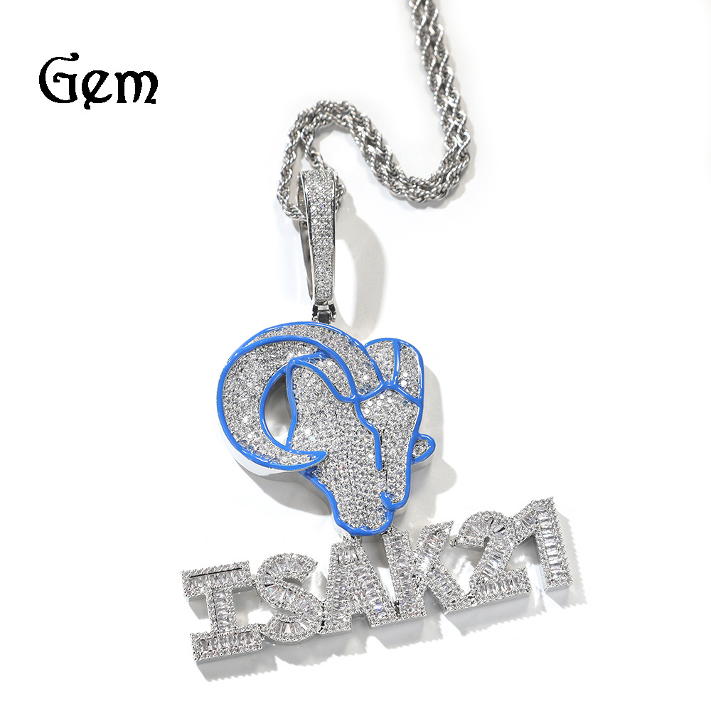 Hiphop Hip-Hop Rap New Product Full Diamond Goat Small Ladder Square Splicing Letter Pendant Creative Animal Element Necklace