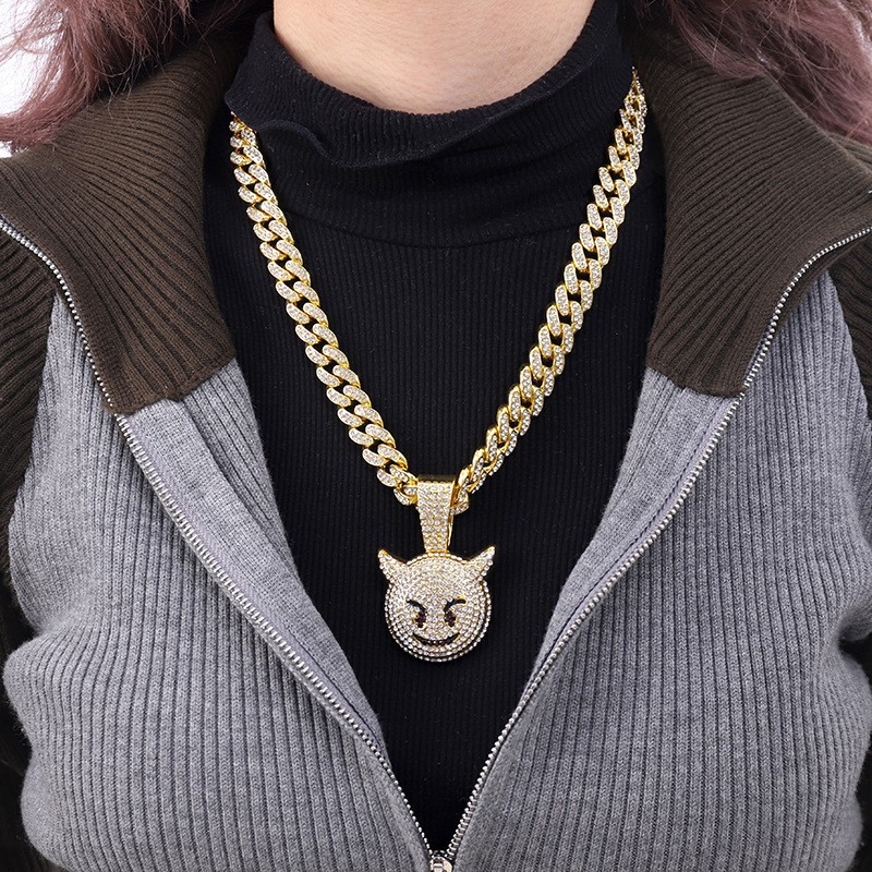 European and American Hip-Hop Stylish Little Devil Pendant Rap Niche Full Diamond Environmentally Friendly Alloy Trendyy Versatile Jewelry Cuban Chain