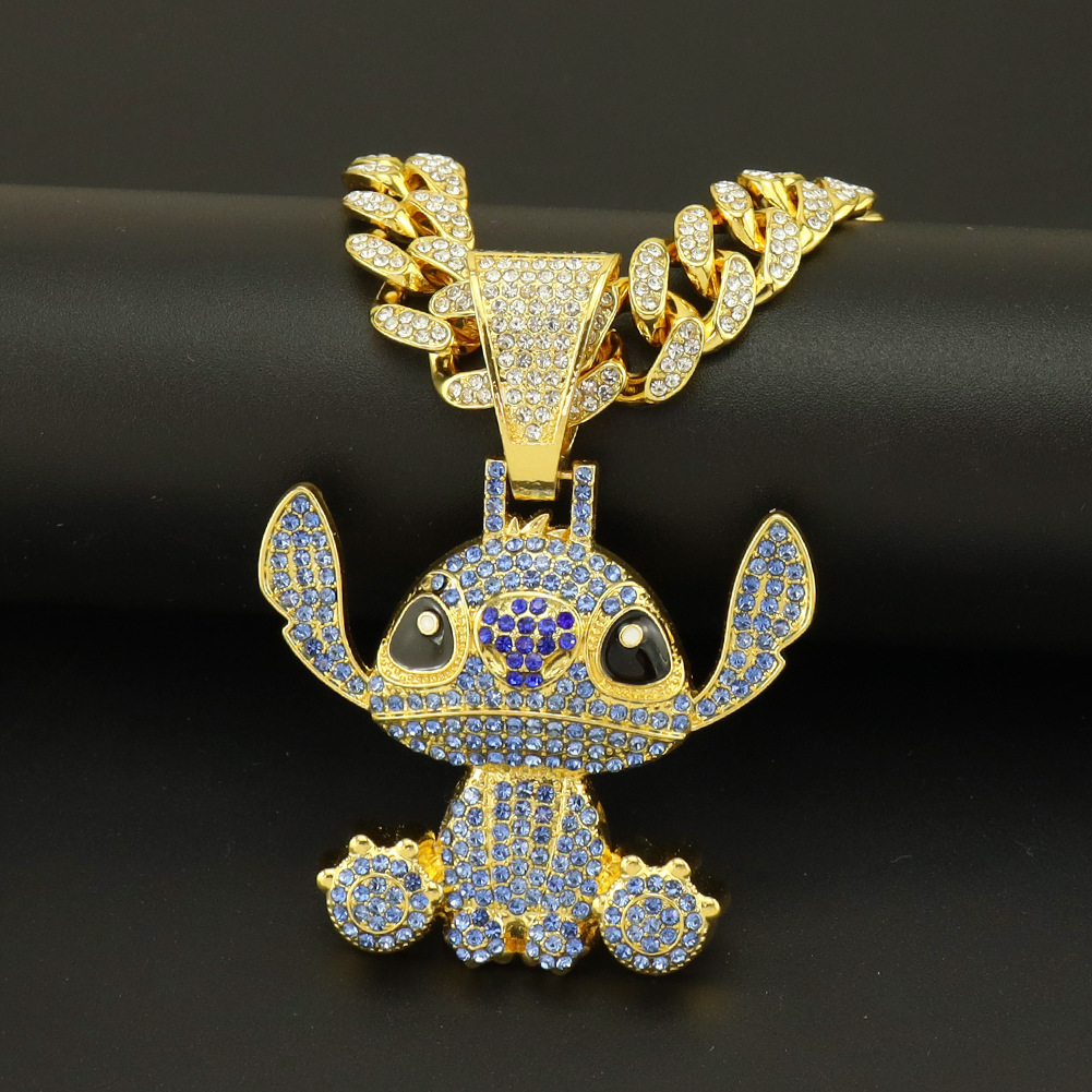 Three-dimensional Diamond-encrusted Cartoon Animal Pendant Necklace Personalized Men's Hip-hop Rap Wear Cuban Chain Clavicle Chain Necklace Chain
