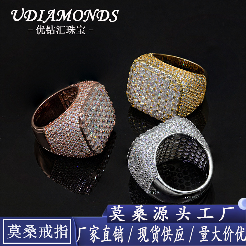 Aliexpress Hot-Selling European and American Men's Hip-Hop Princess-Cut Moissanite Ring, Hip-Hop Rap S925 Silver Inlaid Men's Ring