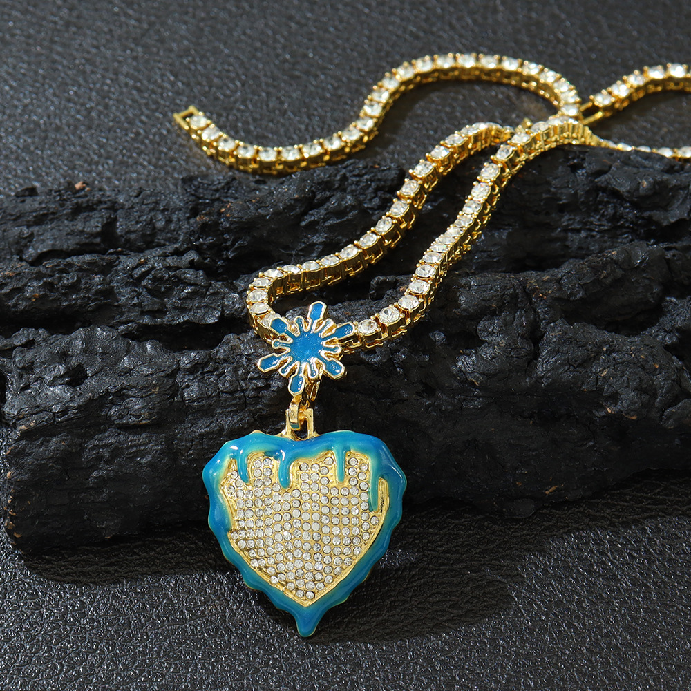 Hip-Hop Rap Street Dance Wear Accessories Snowflake Heart-Shaped Necklace Shining Full Diamond Luminous Dropping Oil Love Heart Pendant