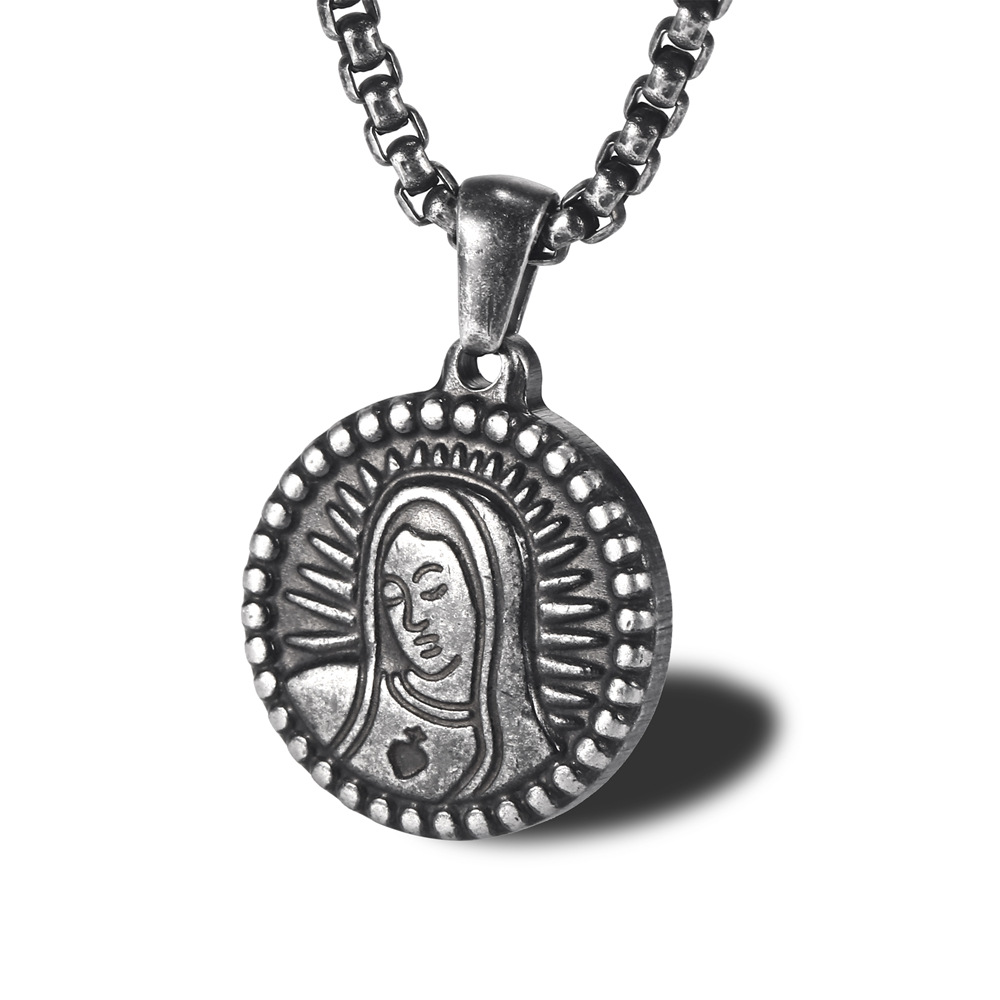 Stainless Steel Virgin Mary tag hiphop Rap Hip Hop small round gold plated pendant men's and women's rock accessories