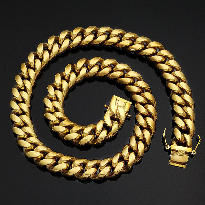 European and American Hot Selling Stainless Steel Cuban Secret Chain Men's Hip Hop Titanium Steel Encrypted Miami Collar Chain Rap Jewelry