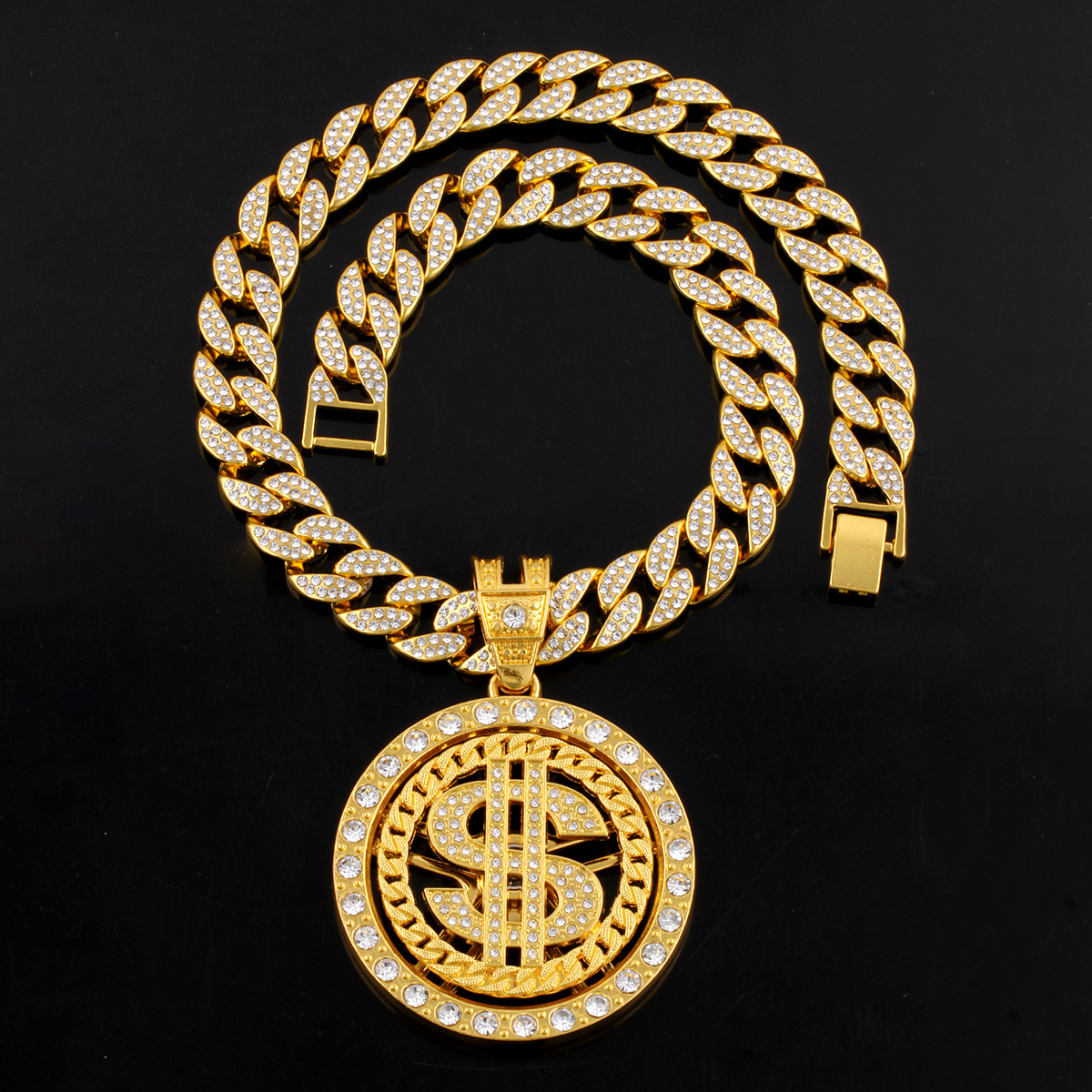 European and American Style Hip-Hop Long Necklace Jewelry Trendy Brand Alloy Full Diamond Pendant Miami Street Rap Accessories Wholesale