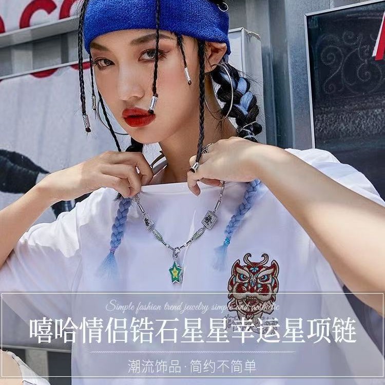 Hip-Hop Couple Chinese Style Diamond Cross Lucky Star Smiley Face Necklace Hip-Hop Street Rap Mahjong Fortune Men and Women
