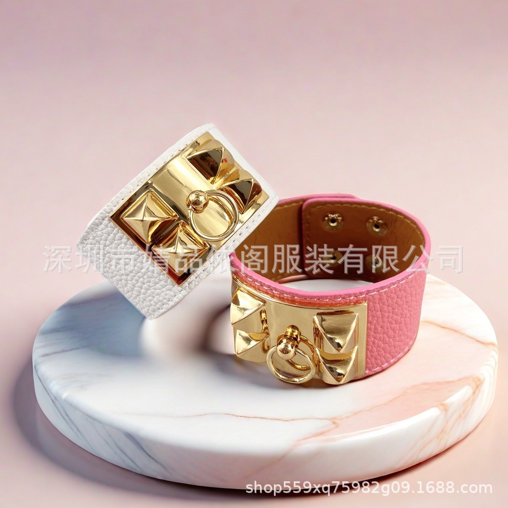 European and American Popular Exaggerated Punk Style Street Hip Hop Rap Wide Version Large Rivet Microfiber Artificial Leather Bracelet Bracelet