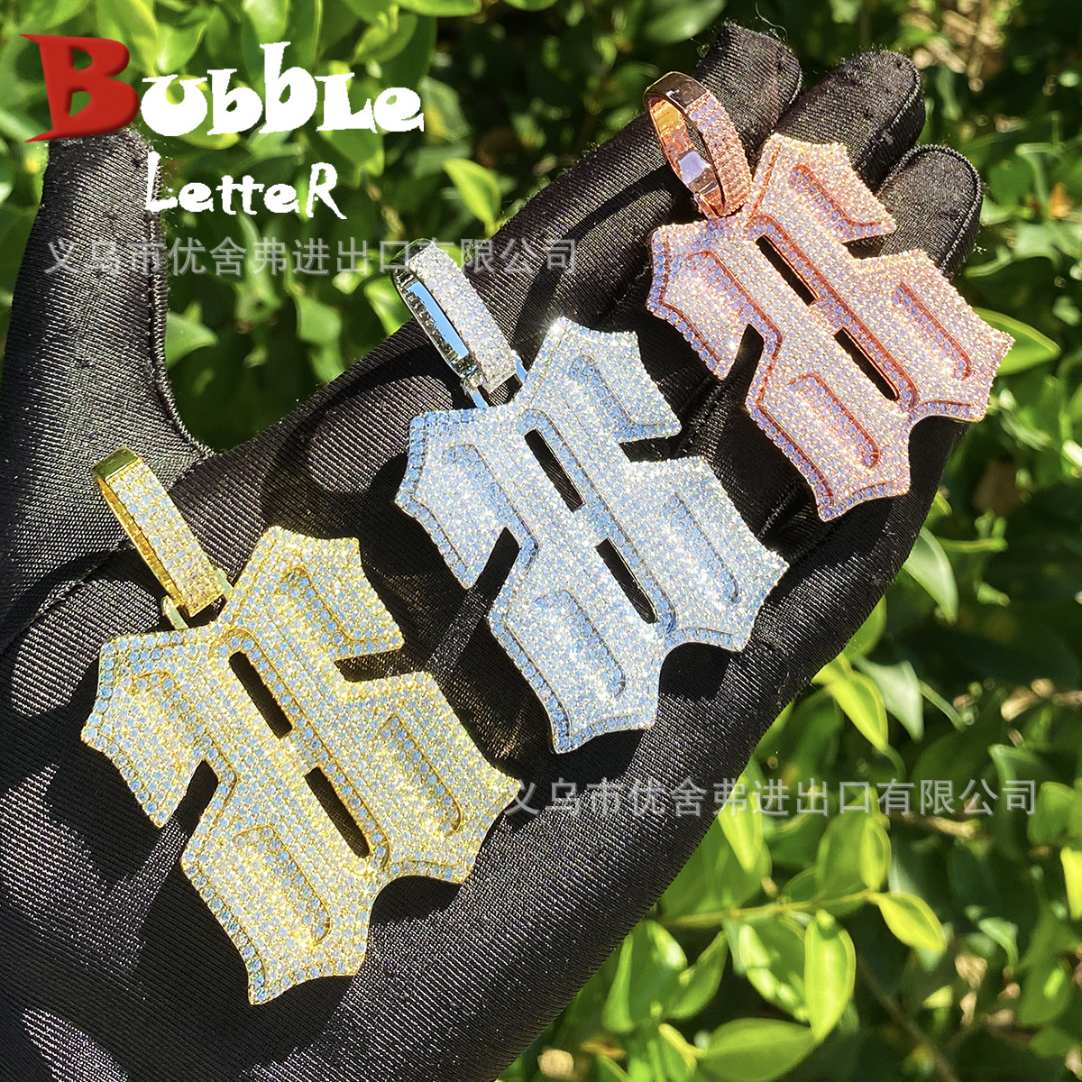 Cross-Border European and American Hip-Hop Micro-Inlaid Luxury Moissanite Full Diamond Pendant Personalized Necklace for Men and Women Trendy Rap Copper Accessories