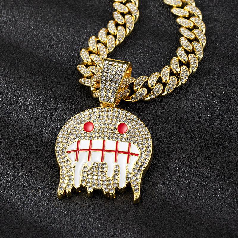 Cross-Border New Cartoon Doll Pendant Full of Zircon Hip-Hop Street Rap Necklace Clothing Accessories Accessories