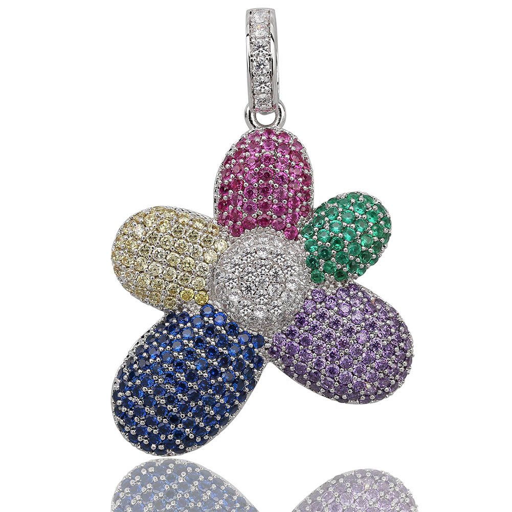 Jinao factory wholesale European and American hip hop colorful zircon colorful flower pendant necklace men and women rap fashion accessories
