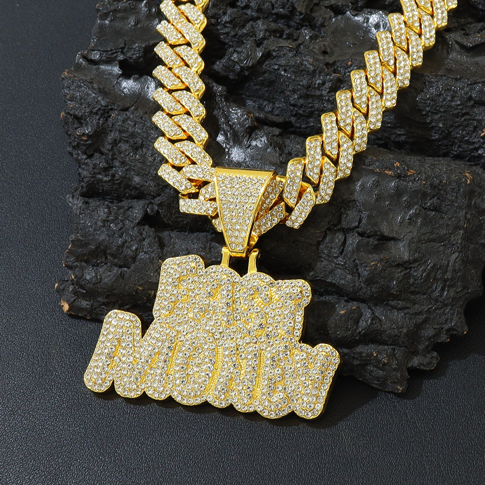 Diamond FASTMONEY Patchwork Letter Pendant Necklace Trendy Hip Hop Rapper Wear Accessories Necklace