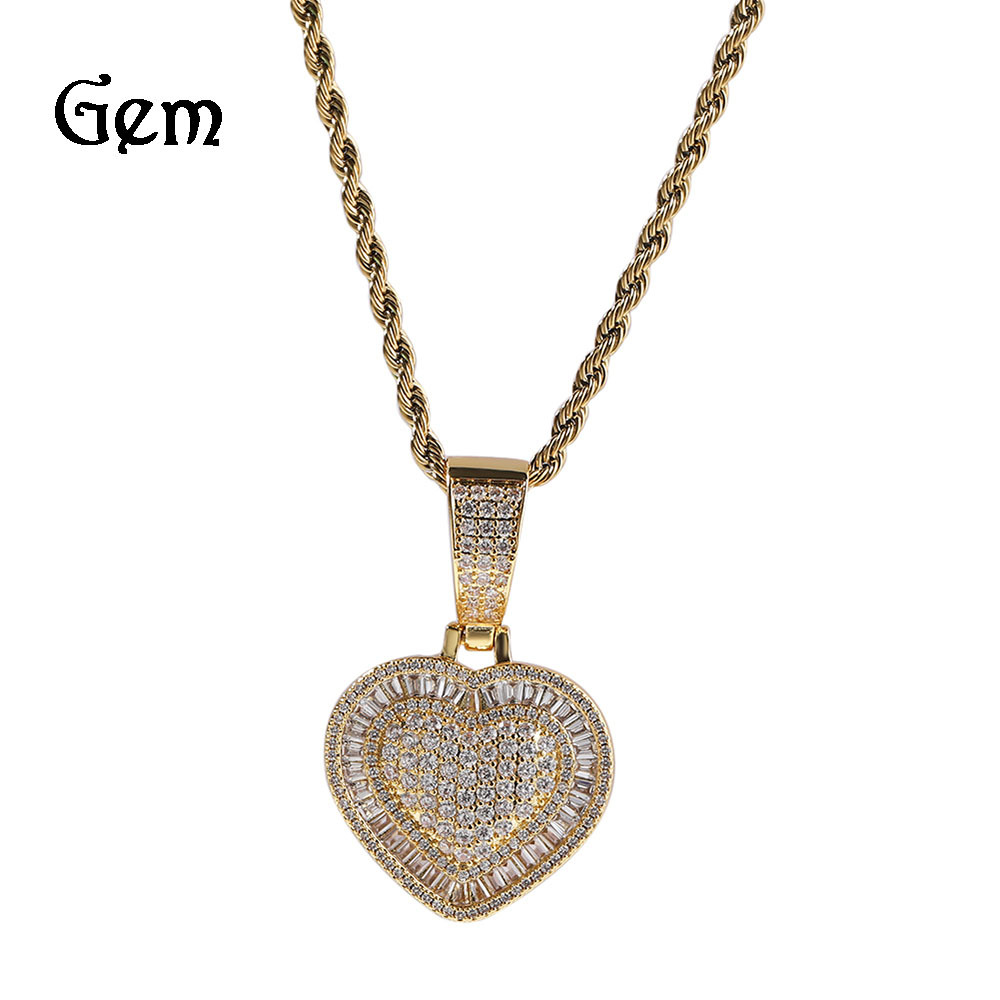 Ancient Cute Copper Inlaid with Zircon Ins Style Heart Pendant Hiphop Hip Hop Rap Trendy Cool Necklace Accessories Jewelry Wholesale