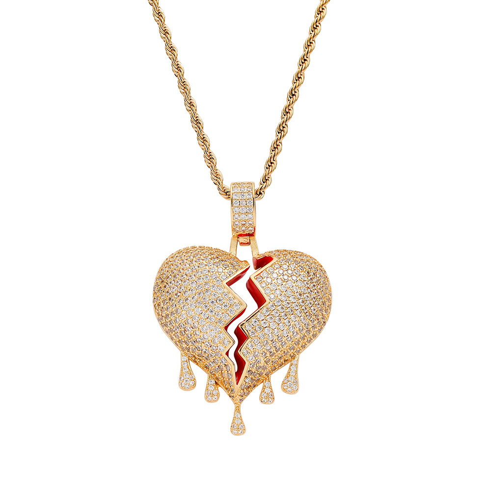 Love water drop pendant European and American hip hop rap accessories copper inlaid zircon three-dimensional split heart drop blood heart-shaped pendant chain