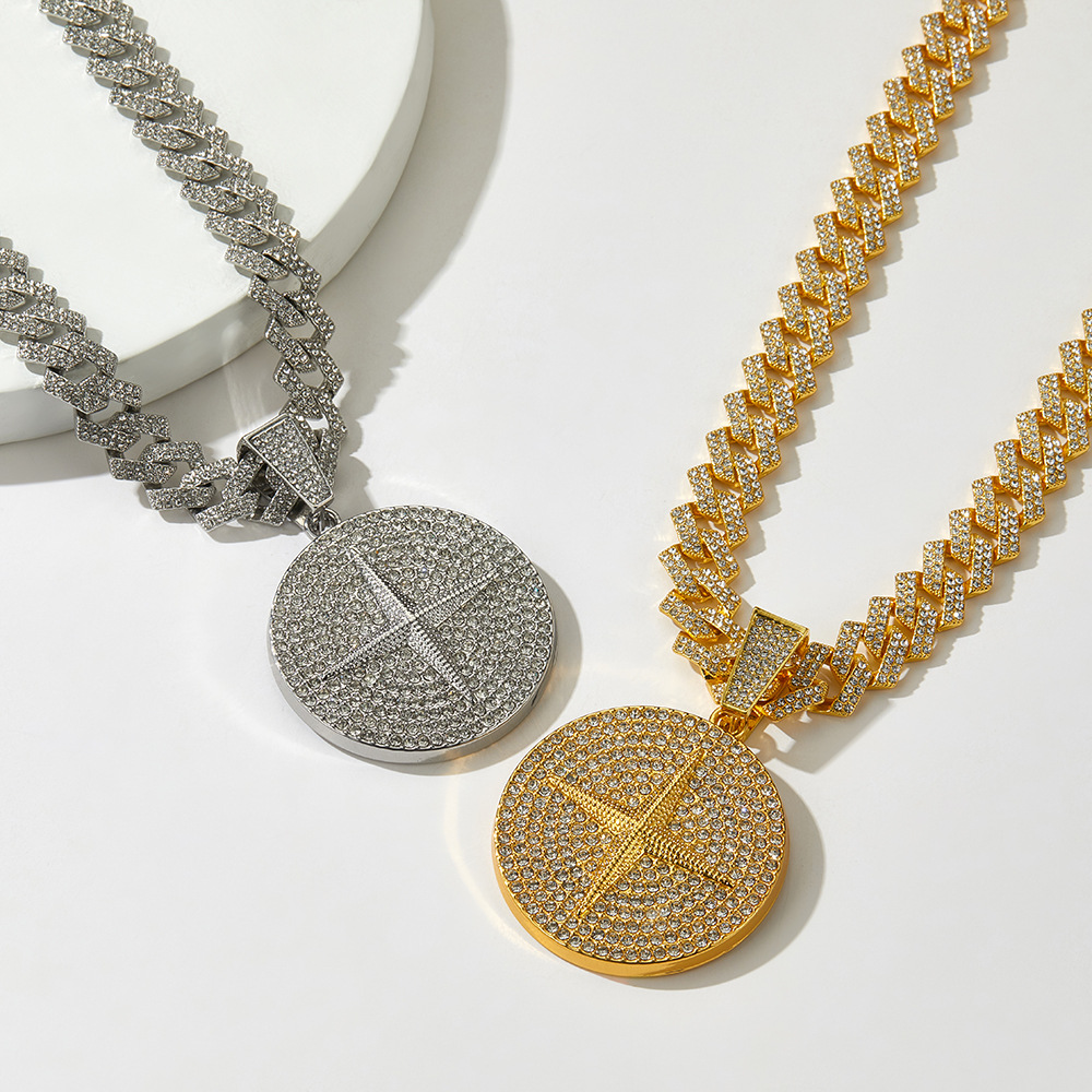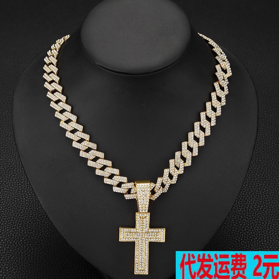 European and American Cross Border Alloy Diamond Cross Pendant Hip Hop Fashion Trend Rap Men's Cuban Chain Necklace