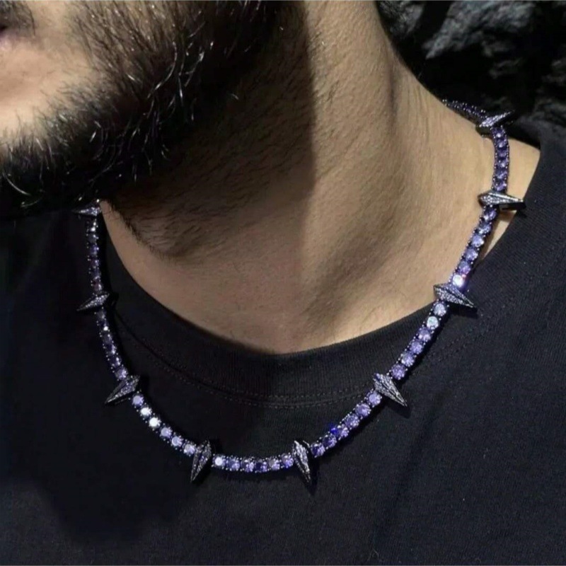 Qingdao Foreign Trade Black Panther Necklace Zinc Alloy Material Inlaid Purple Gemstone European and American Personality Hip Hop Rap Punk