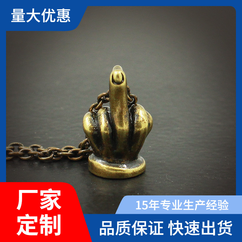 Brass creative personality vertical middle finger hanging chain car accessories hipster rock hip hop rap pendant men and women with decoration