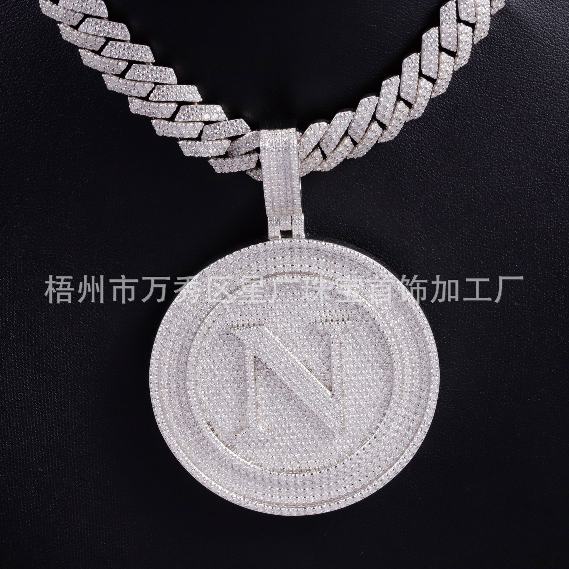 European and North American Cross-Set Moissanite Pendant Men's Cool Trendy Rapper Cross-Border Hip-Hop Style Cuban Chain