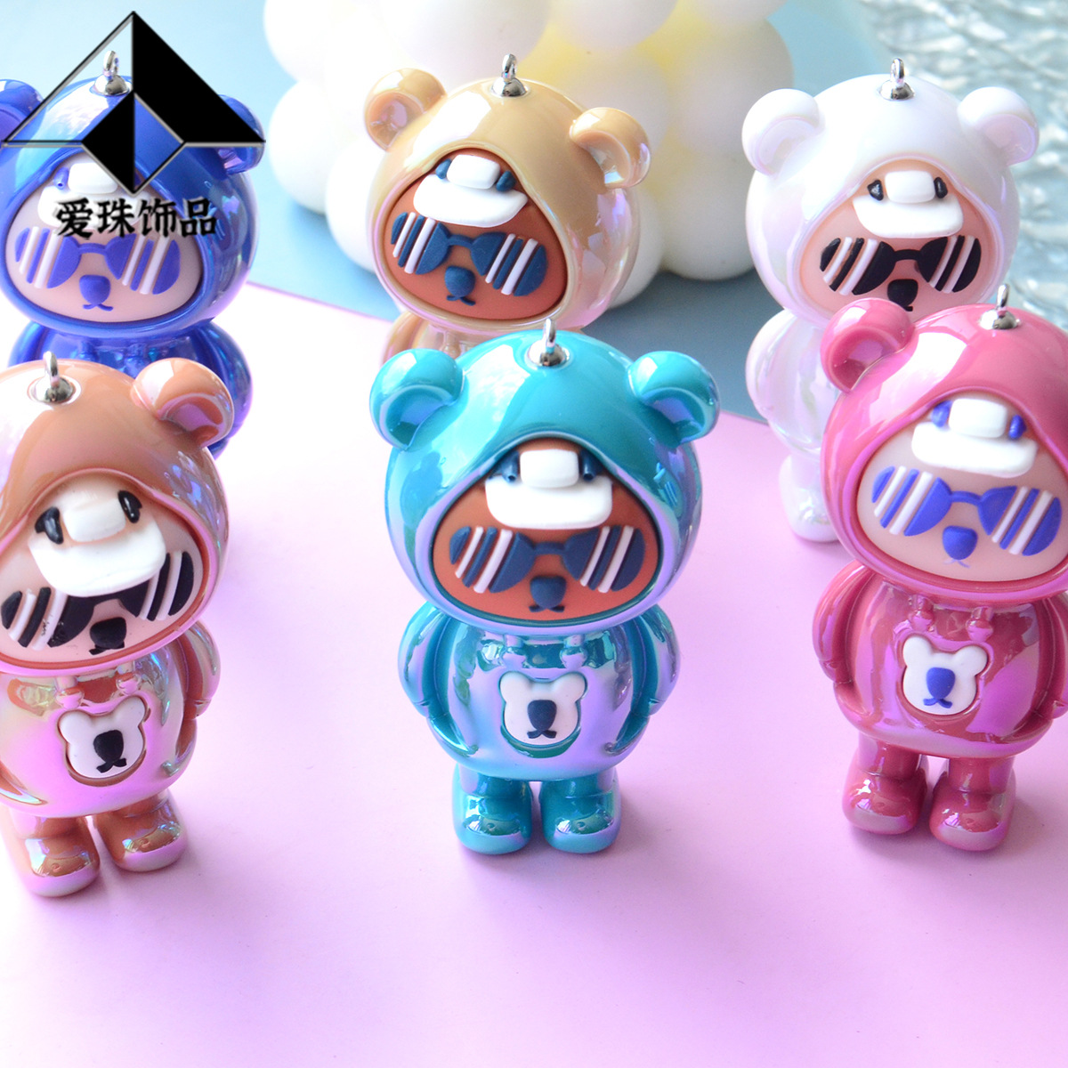 Solid Color UV Color Plated Trendy Cool Rap Bear DIY Keychain Pendant Sunglasses Bear Ornaments Toy Accessories