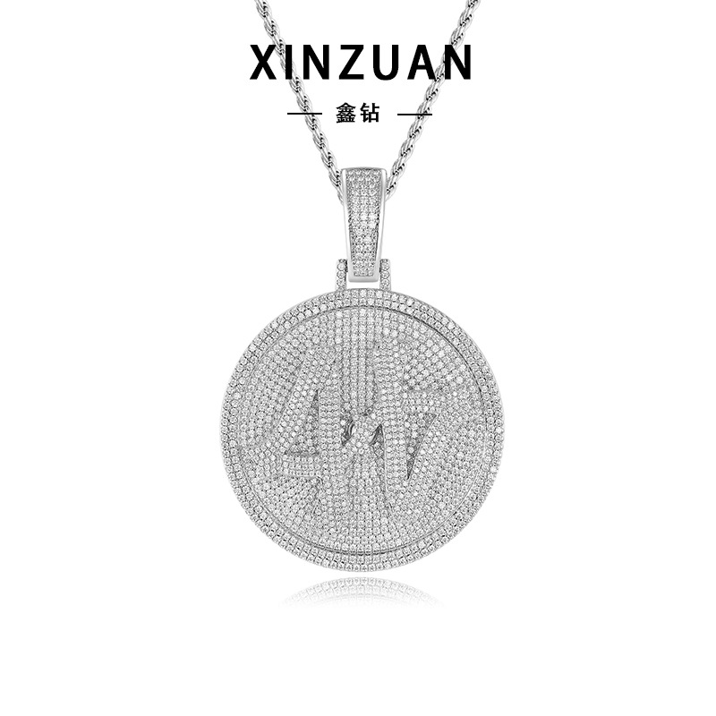 Sterling Silver Cross-Border European and American Hip-Hop Moissanite Necklace Custom Digital Round Pendant Jewelry Rapper Hipho