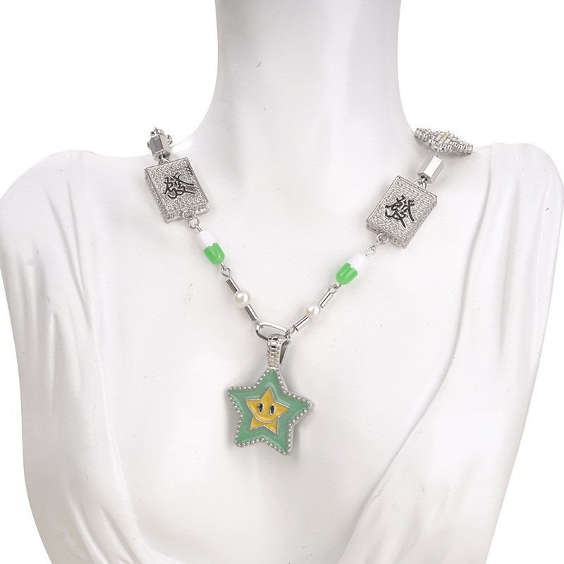 Cross-border New National Tide Diamond-encrusted Cross Lucky Star Smiley Necklace Hip-hop Street Rap Mahjong Rich Men and Women