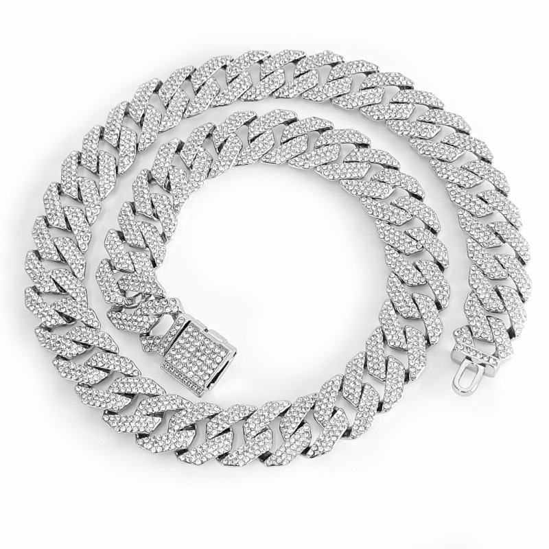 15mm square clamshell prismatic strip three-row diamond rap hip-hop Cuban chain large chain factory outlet