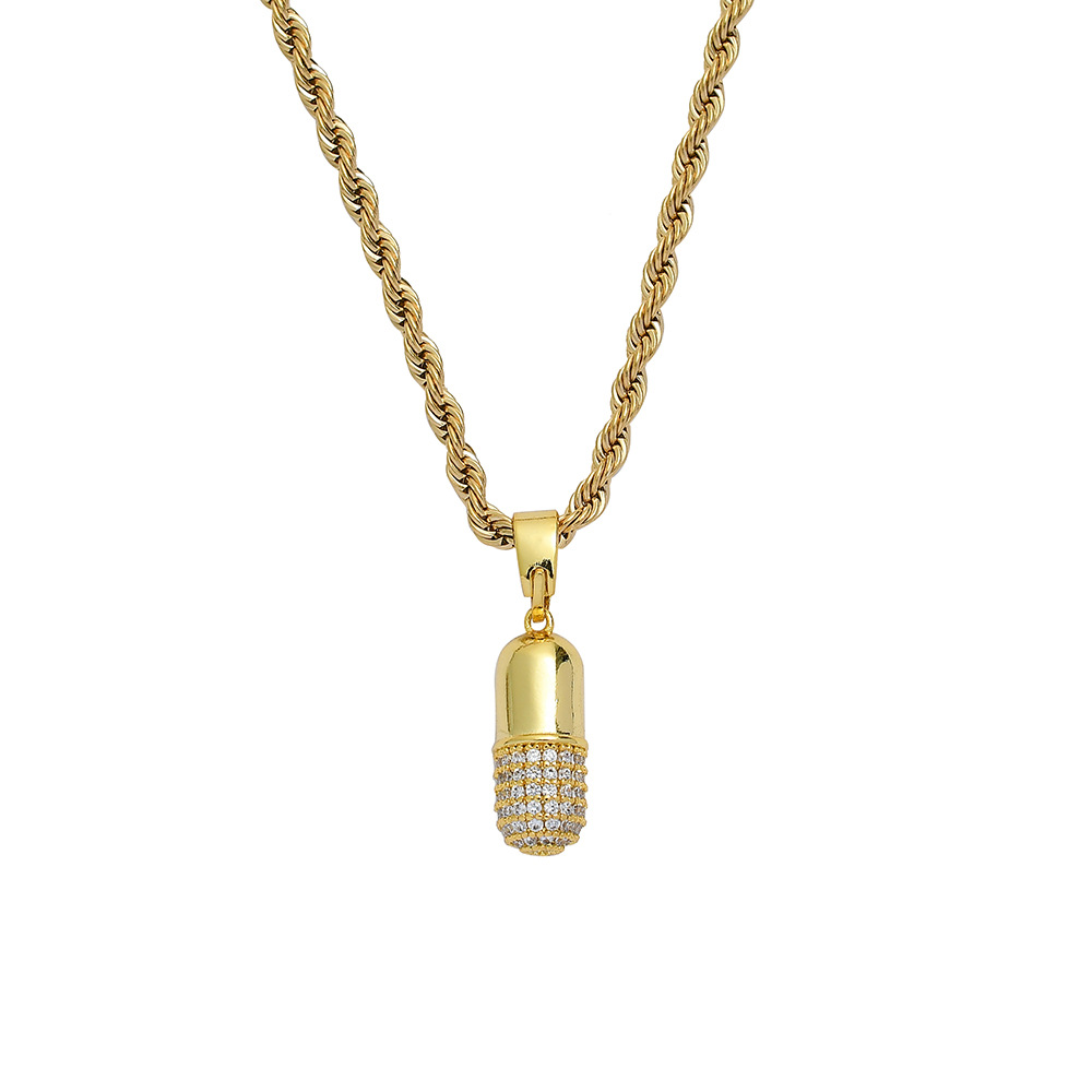 Bullet Pill Pendant European and American Hip-Hop Jewelry Copper Inlaid Zircon Street Rap Sweater Chain Bullet Pendant Chain