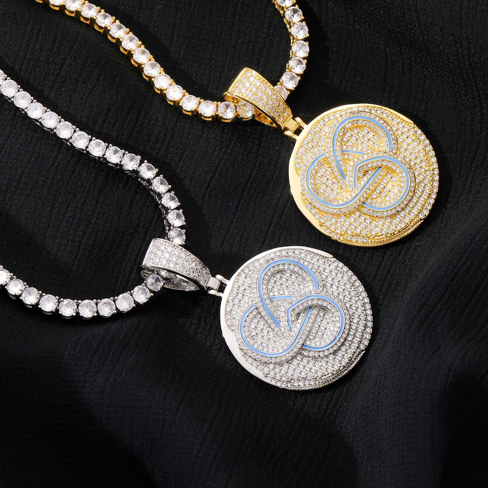 New Foreign Trade Jewelry Gali Collaboration Small Round Pendant Hip-Hop Full Diamond Zircon Personality Rap Trendy Accessory