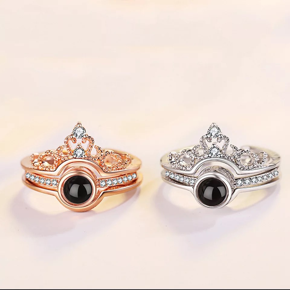 Shake the sound of the same 100 language I love you projection Crown combination ring two-in-one open ring men's and women's ring