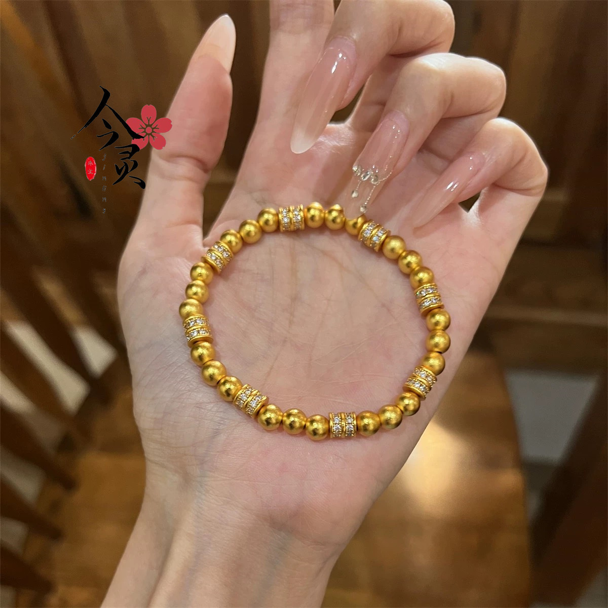 Gold shop with gold and gold diamond running ring beads bracelet women's new Chinese style national tide ancient style gold beads bracelet