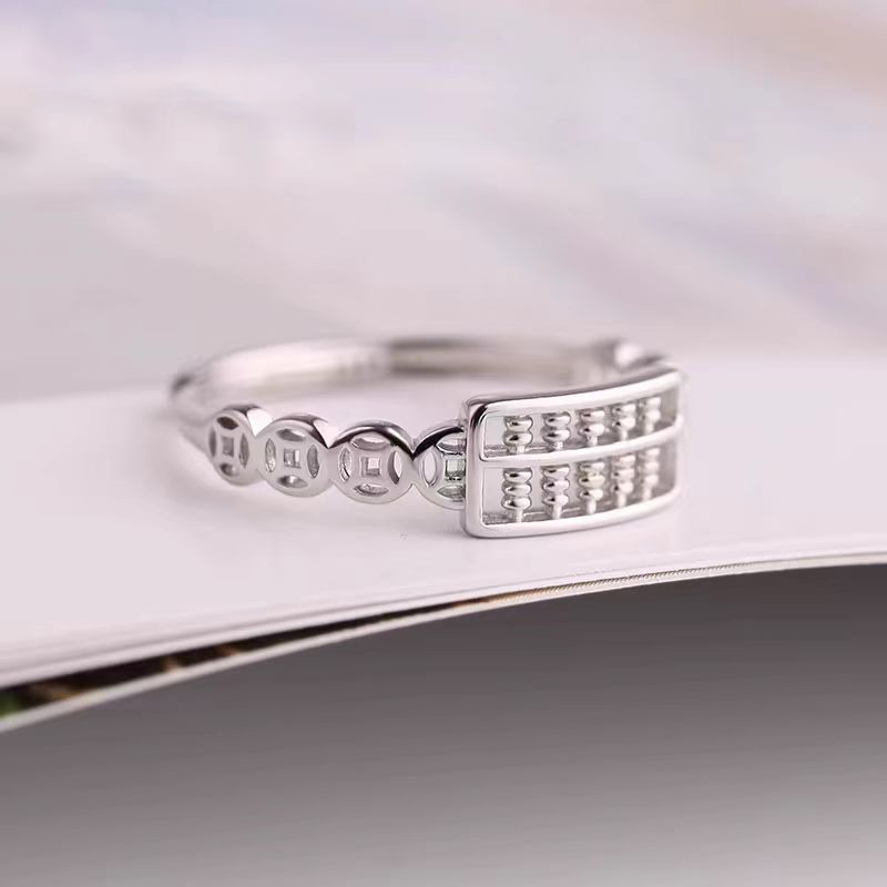 S925 Sterling Silver Calculus Wishful Opening Ring Women's Retro Chinese Style Lucky Coin Index Finger Fashion Personalized Jewelry