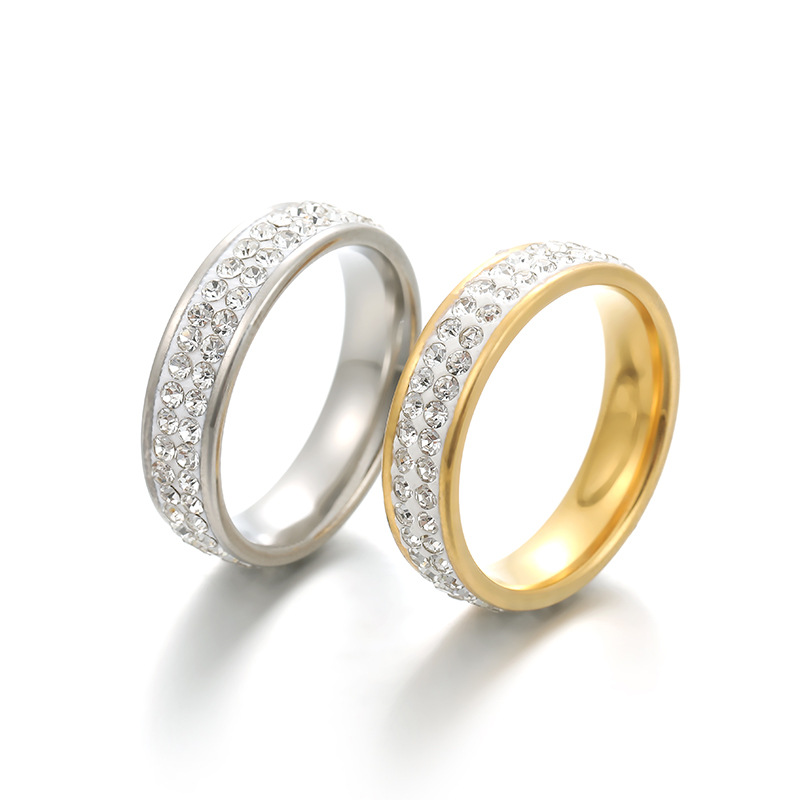European and American Cross-Border 6mm Stainless Steel Double Row Full Diamond Ring Simple Fashion Stylish Ins Ring Bracelet Couple Ring